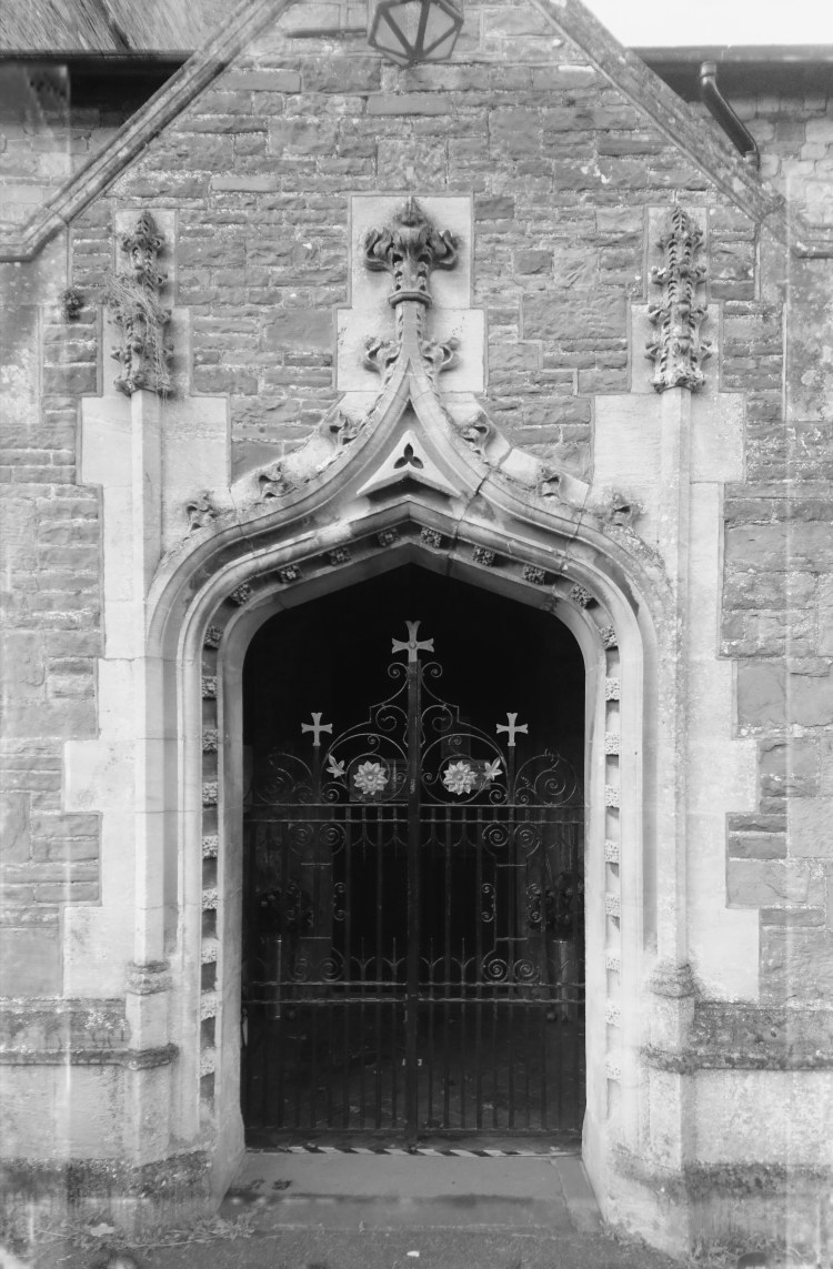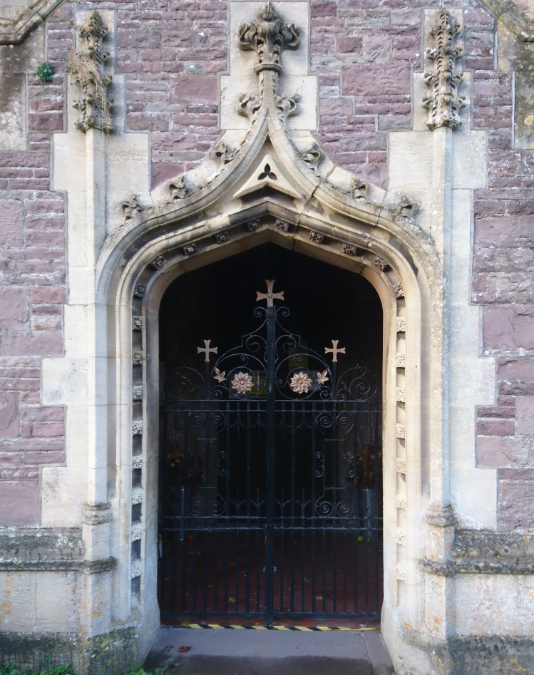 Victorian church porch entrance with ogee moulding, Llangattock, Crickhowell, Powys