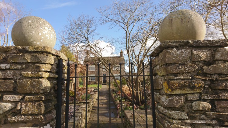 Detached house and garden viewed through gateway, Rectory Road, Crickhowell, Powys