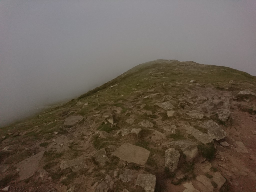 A shade under 600 metres, the peak of Sugarloaf Mountain in low cloud, Brecon Beacons National Park