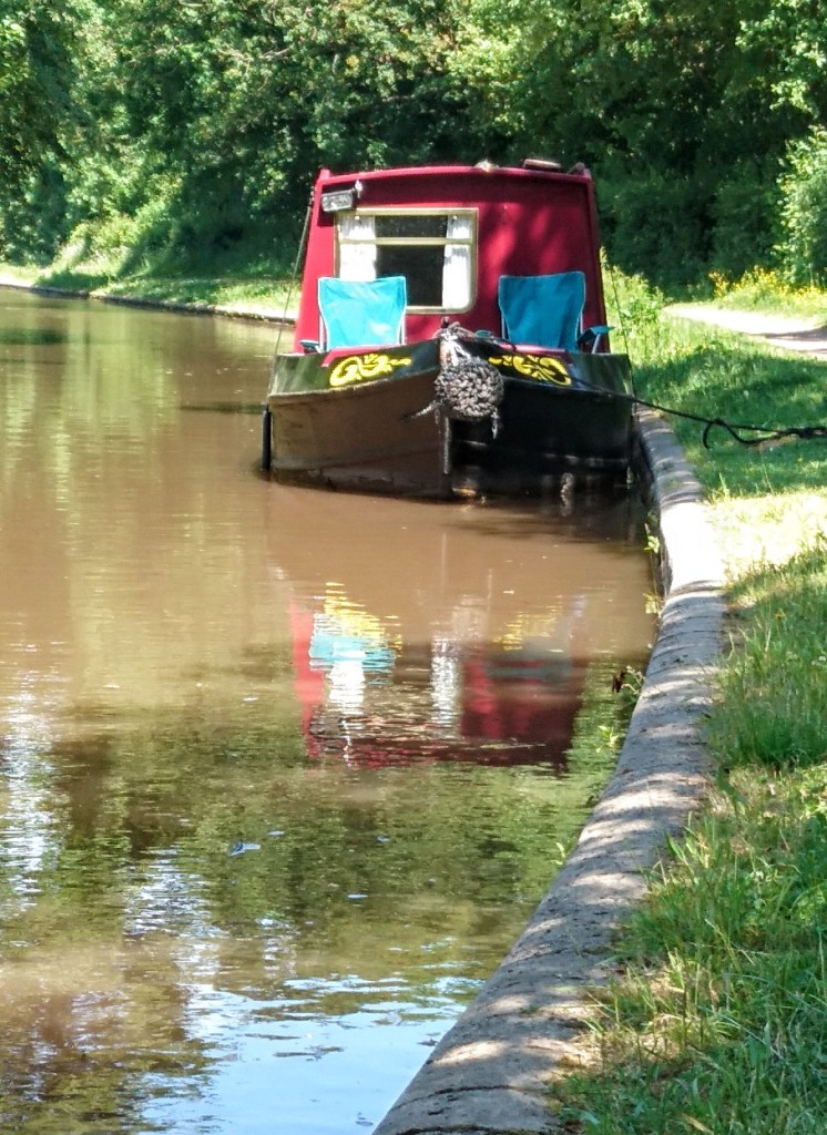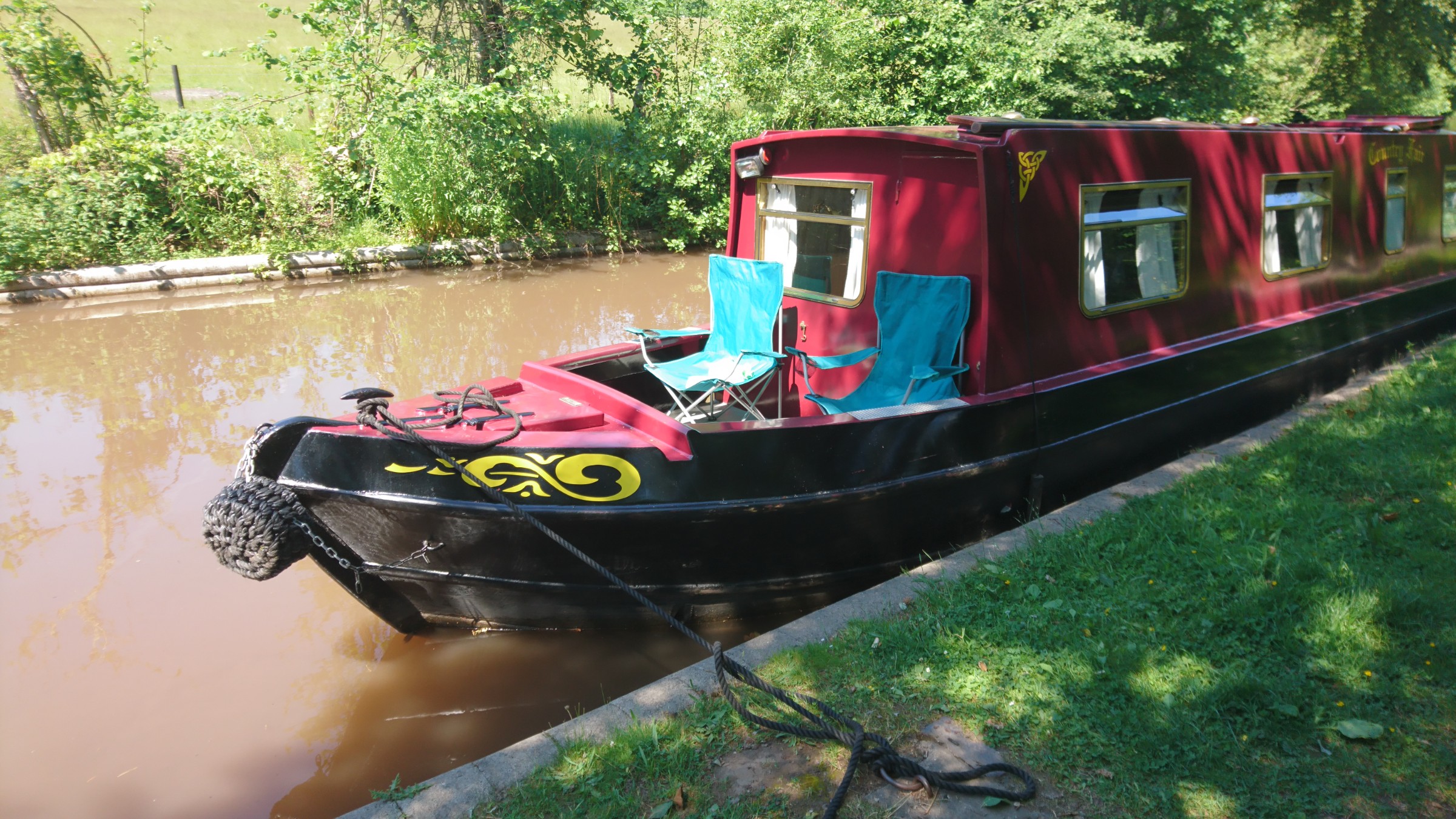 Narrowboat on the Monmouthshire and Brecon canal near Llangattock, Crickhowell, Powys
