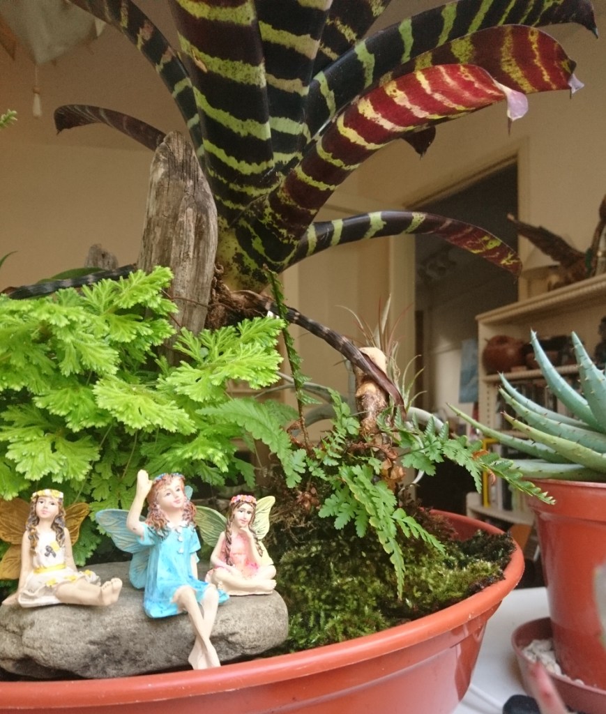Crimbo window: fairies at the bottom of the garden? Window display, Bridge Street, Crickhowell