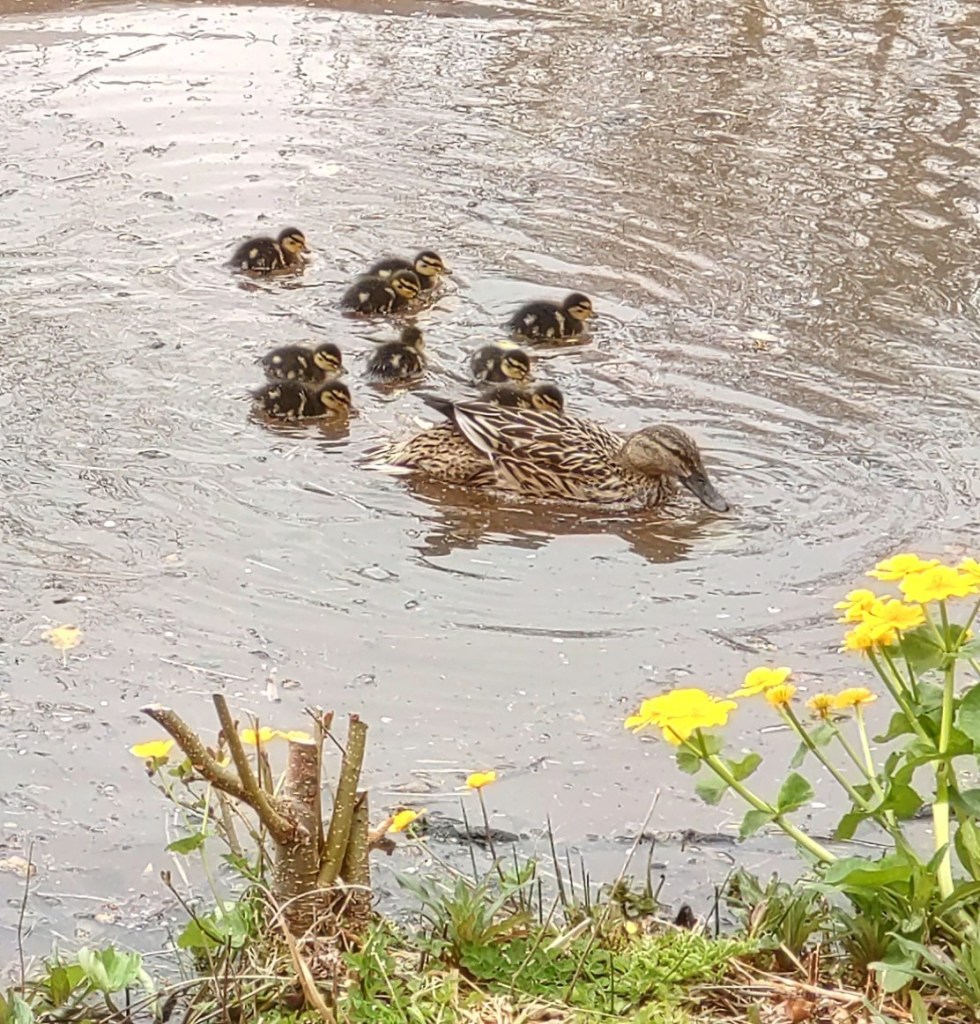 Mother duck and nine little quacklings, er, ducklings: Monmouthshire and Brecon Canal, Llangattock, Powys