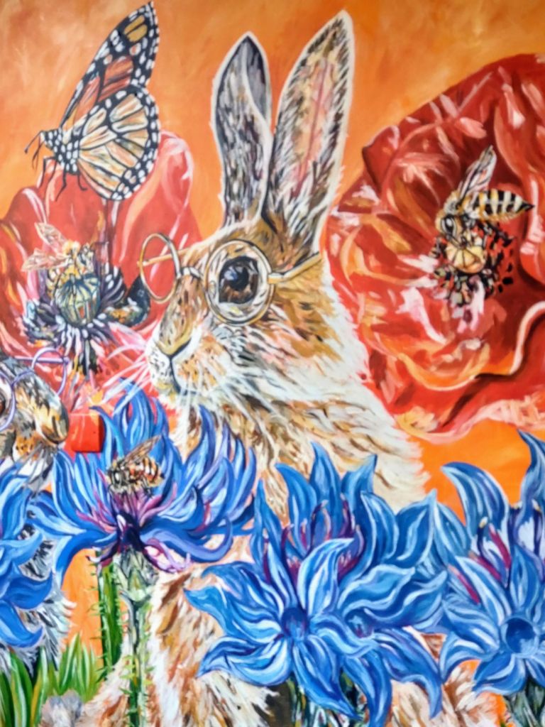 Details of a mural in the eye clinic of the Ophthalmology Unit in the Royal Gwent Hospital, Newport, Wales: a bunny for Easter Day.