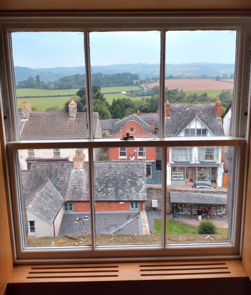 View from a window, Hay-on-Wye Castle (Castell y Gelli), Powys; the ruins of the medieval building were bought by a trust in 2011 and now, restored, it’s open to the public.