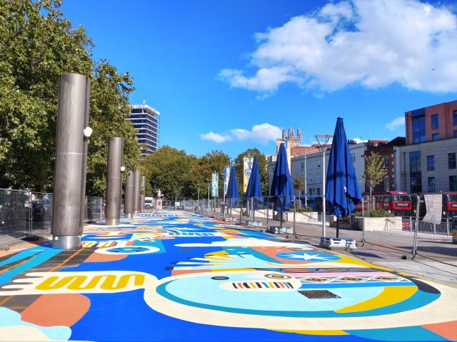 Colourful public art celebrating the city’s past, present and future, The Centre, Bristol, installed September 2025.