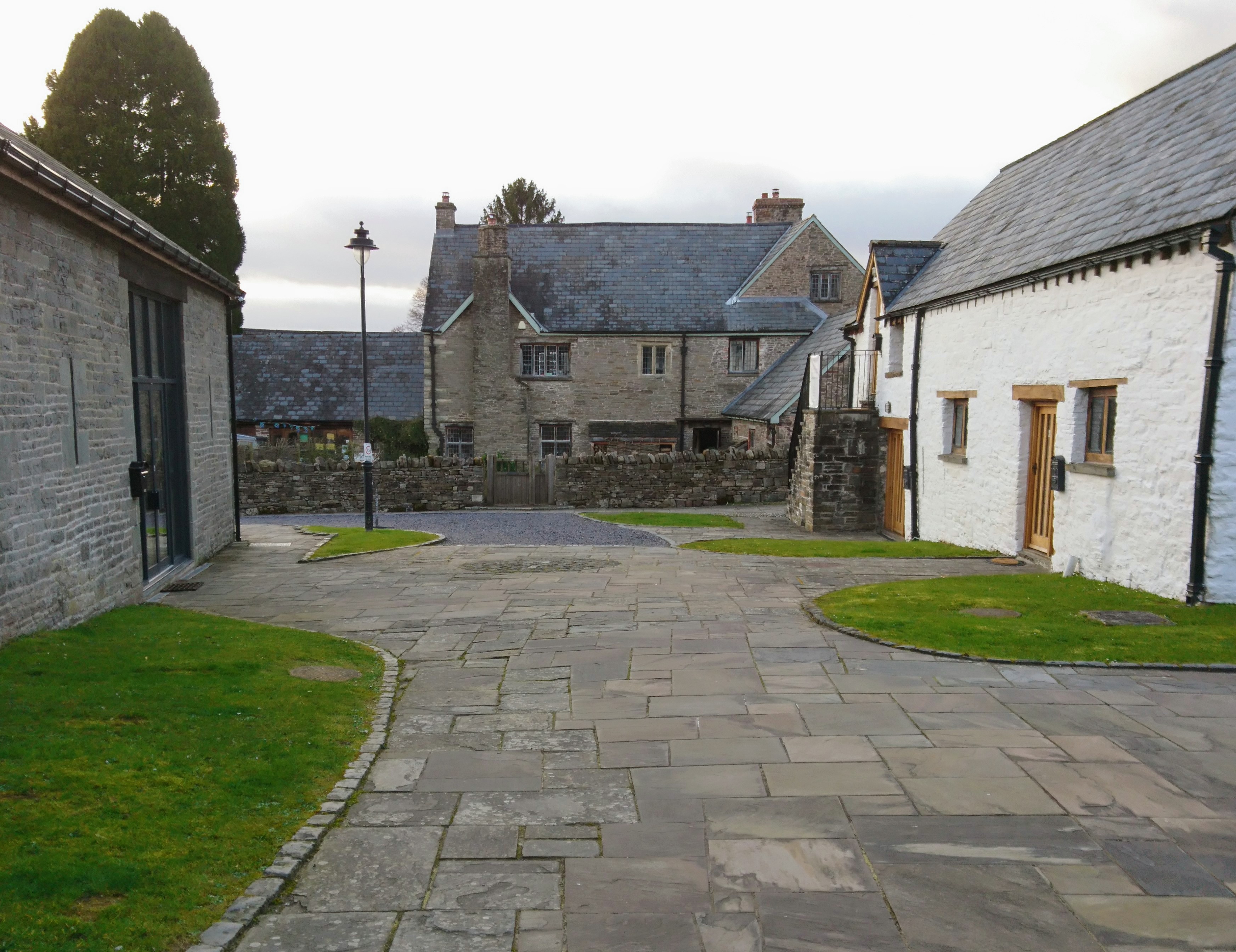 Courtyard, Upper House Farm, Crickhowell, looking towards the Tudor period Rumsey Place.