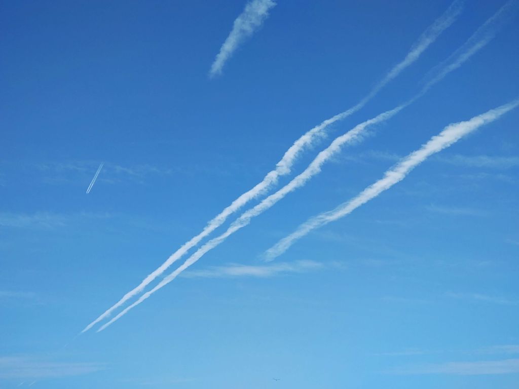Contrails over Welsh skies heading west to North America.