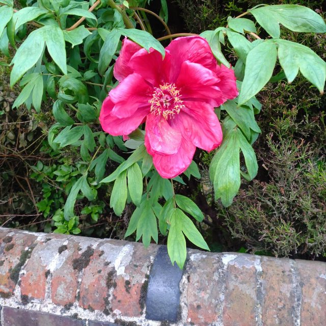 An ephemeral peony blooms.