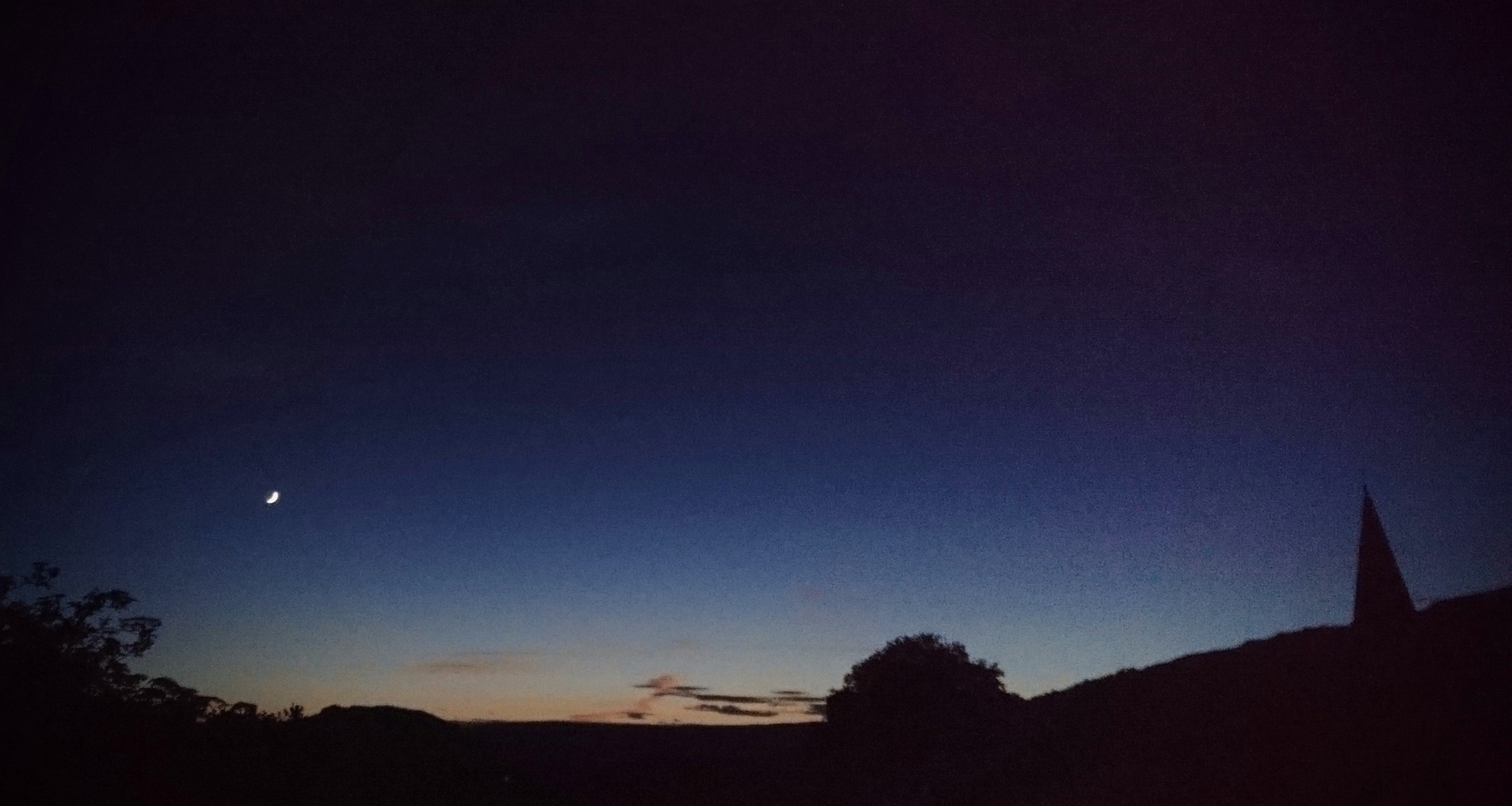 Crescent moon over Usk Valley, Crickhowell, Wales