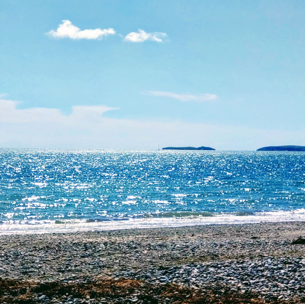 Bardsey Island at the end of the Llŷn Peninsula, viewed from Pwllheli beach