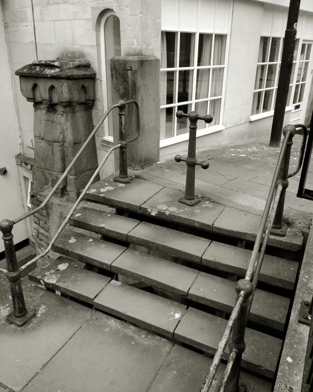 Steps by St Philip’s Bridge, Bristol, leading down to the River Avon.