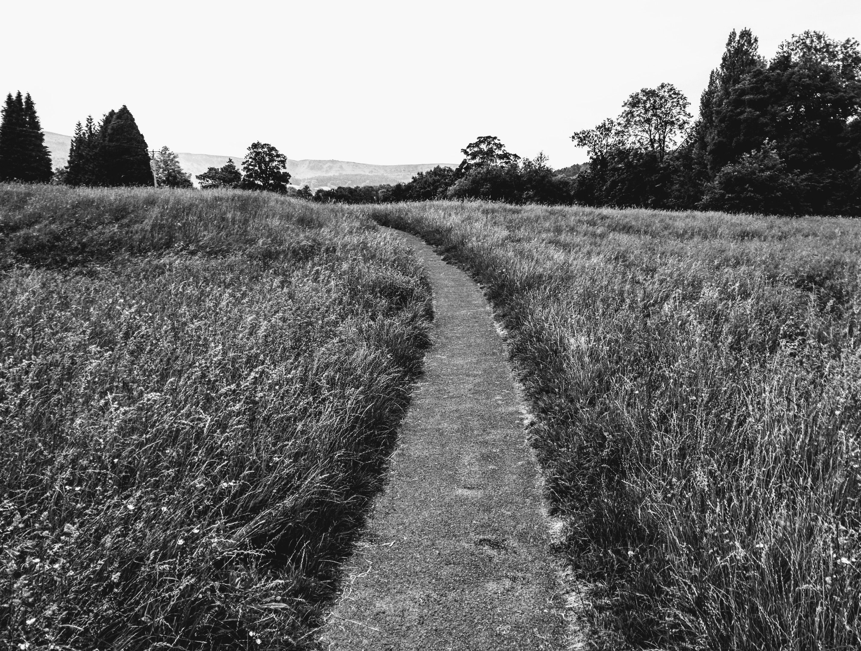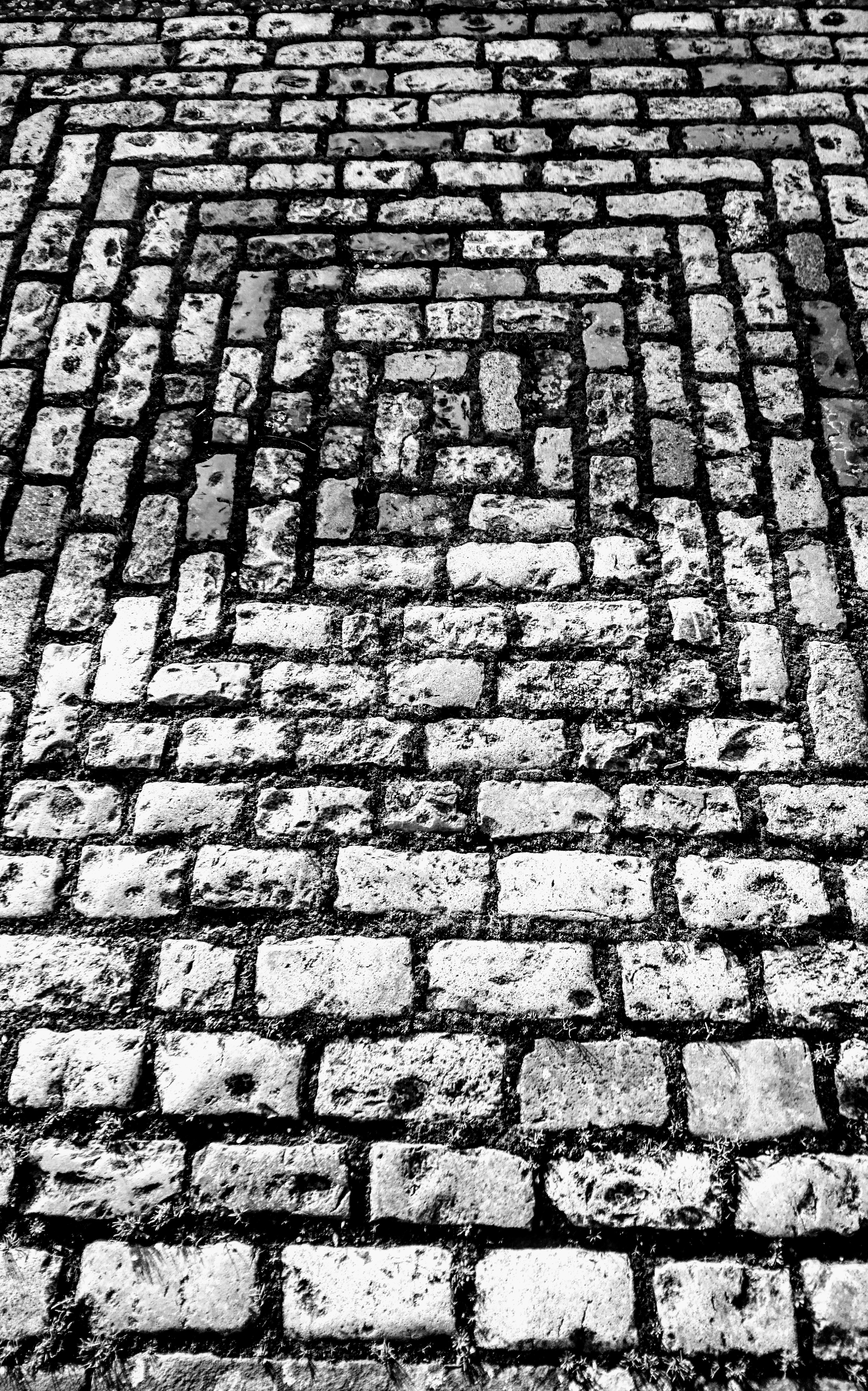Setts arranged in a spiral labyrinthine path, Castle Park, Bristol